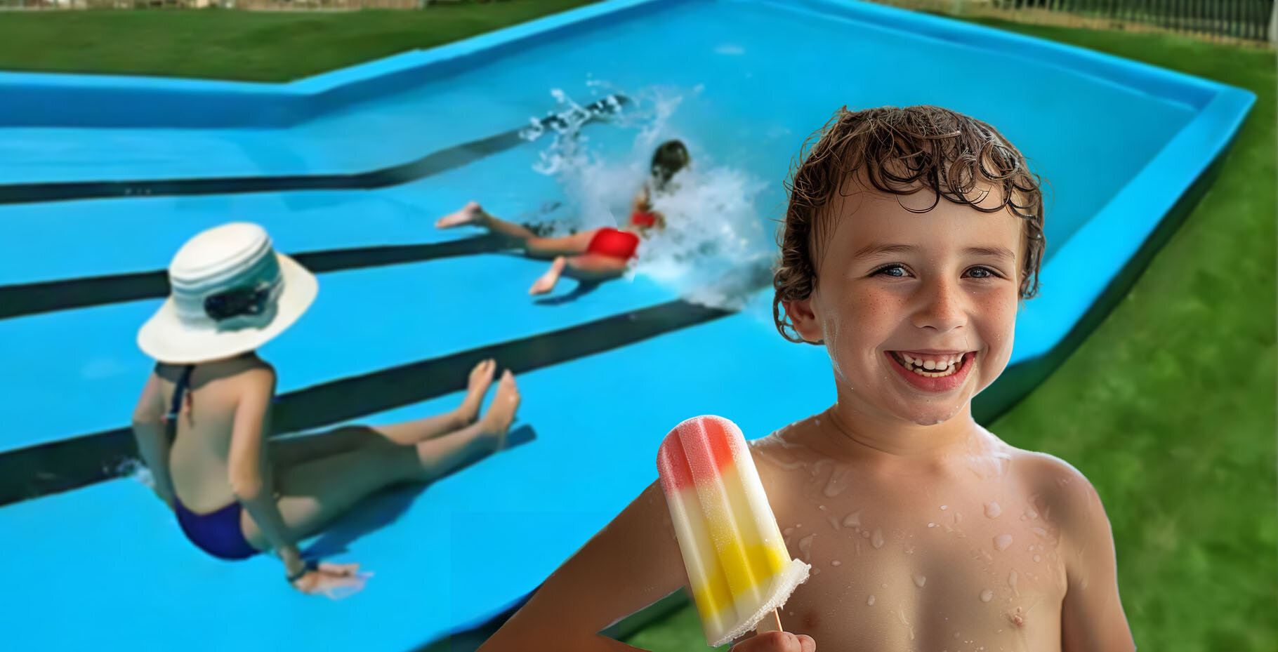 – מזרקות מים ומגלשה לילדים (גילאי 2-12)